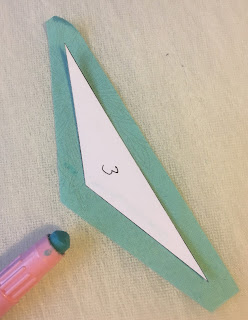 Video, der viser, hvordan jeg limer stoffet på pappet, så jeg får helt skarpe og nøjagtige spidser.